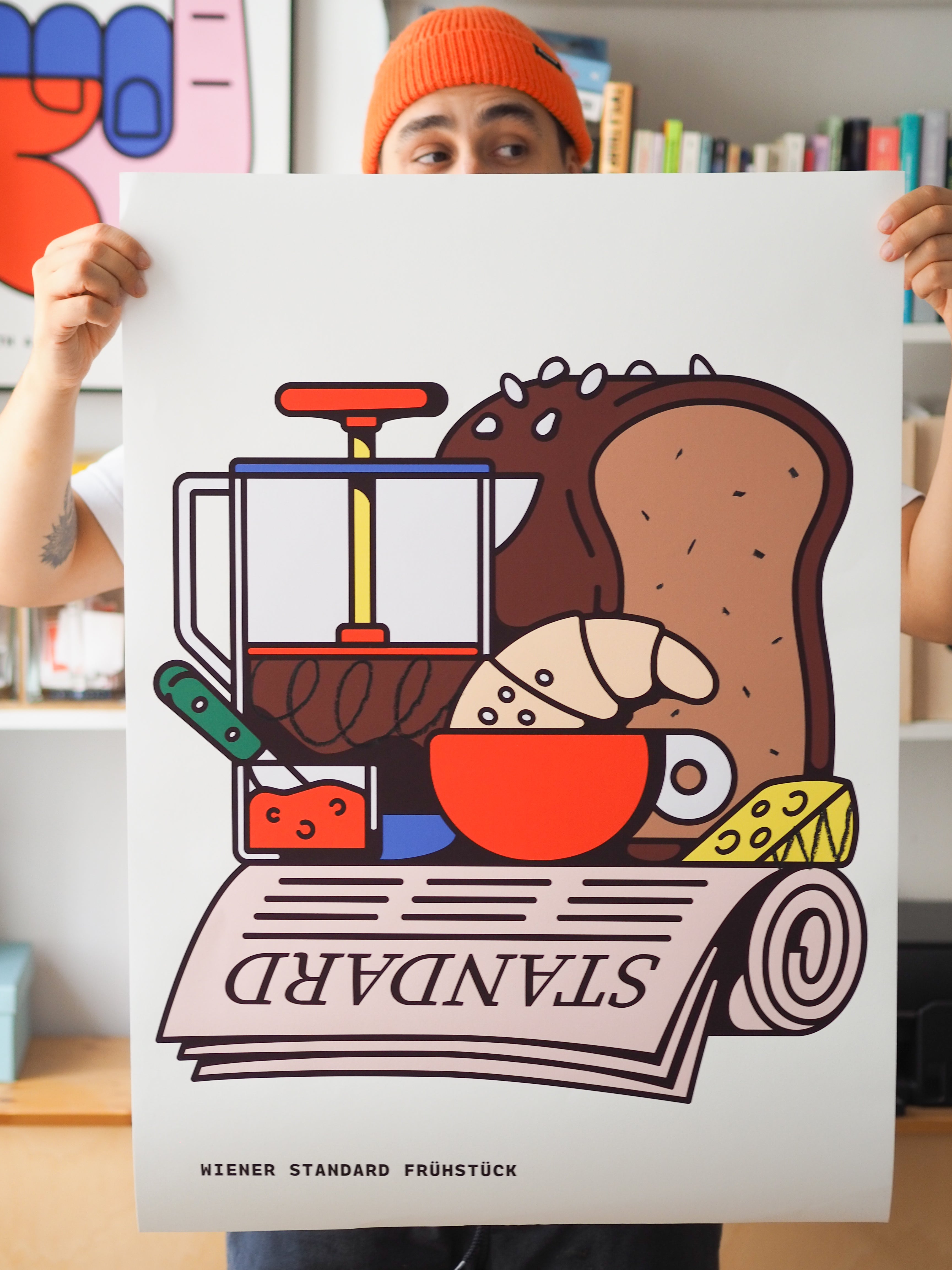 Exklusiver Fine Art Print in einer limitierten Edition vom Designer Duo RadandYellow über das Wiener Frühstück am Morgen. Einzigartige, mit Ölkreide handgemalte Details machen jeden Print zu einem Unikat.